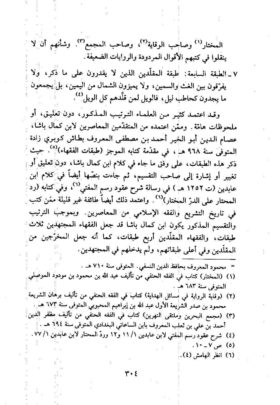 ٧ - الطبقة السابعة: طبقة المقلدين الذين لا يقدرون على ما ذكر، ولا يفرقون بين الغث والسمين، ولا يميزون الشمال من اليمين، بل يجمعون ما يجدون كحاطب ليل، فالويل لمن قدلهم كل الويل (٤).