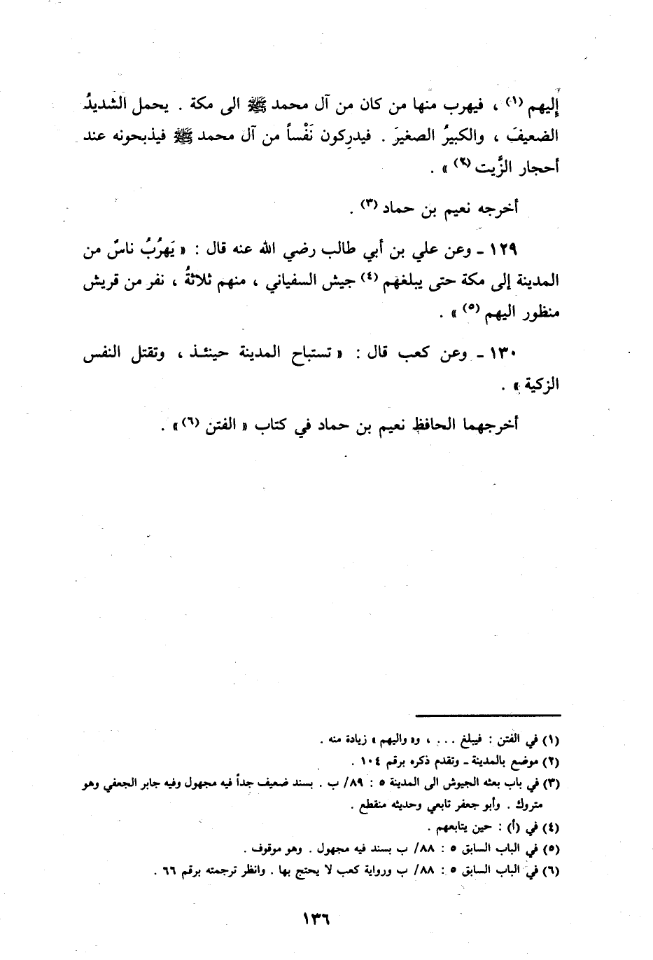 وعن علي بن أبي طالب، عليه السلام، قال: يهرب ناس من المدينة إلى مكة، حين يبلغهم جيش السفياني، منهم ثلاثة نفر من قريش، منظور إليهم.