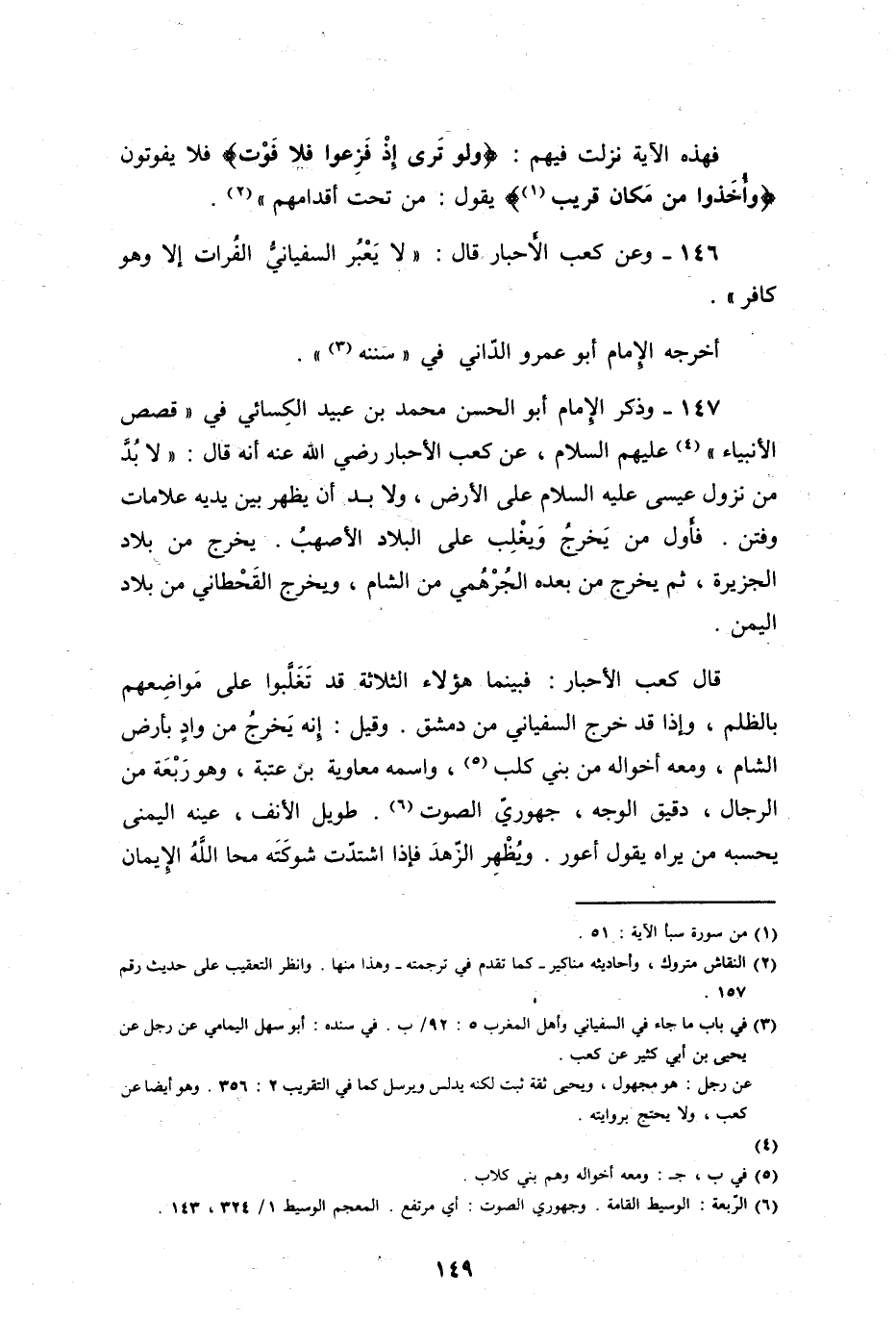 وعن كعب الأخبار، رضي الله عنه، قال: لا يعبر السفياني الفرات إلا وهو كافر.