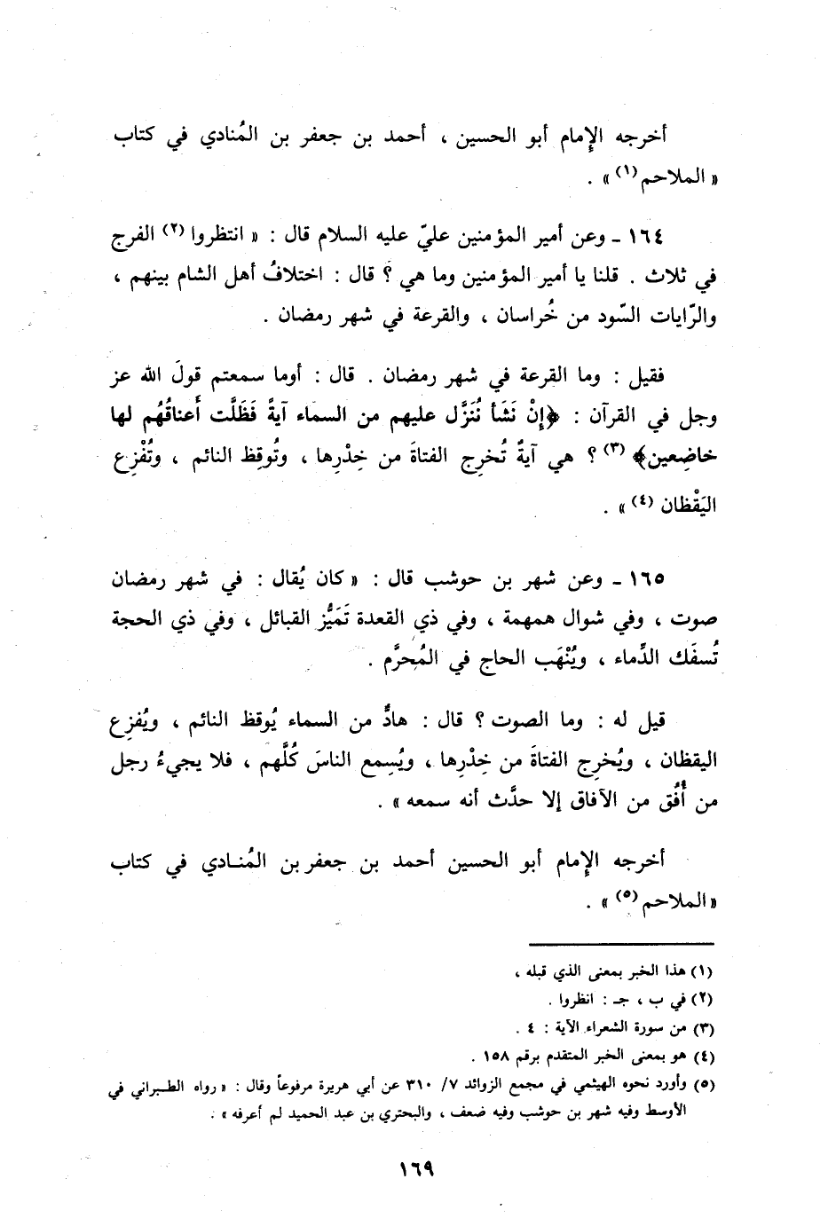 أخرجه الإمام أبو الحسين أحمد بن جعفر المنادي، في كتاب الملاحم.