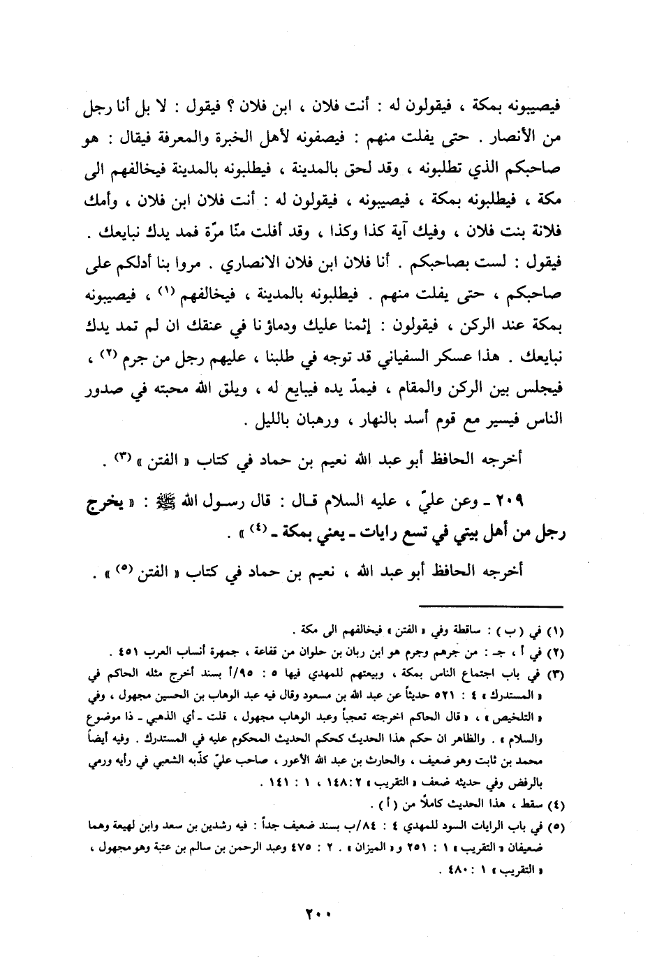 وعن علي، عليه السلام قال: قال رسول الله صلى الله عليه وسلم: " يخرج رجل من أهل بيتي، في تسع رايات " يعني بمكة.