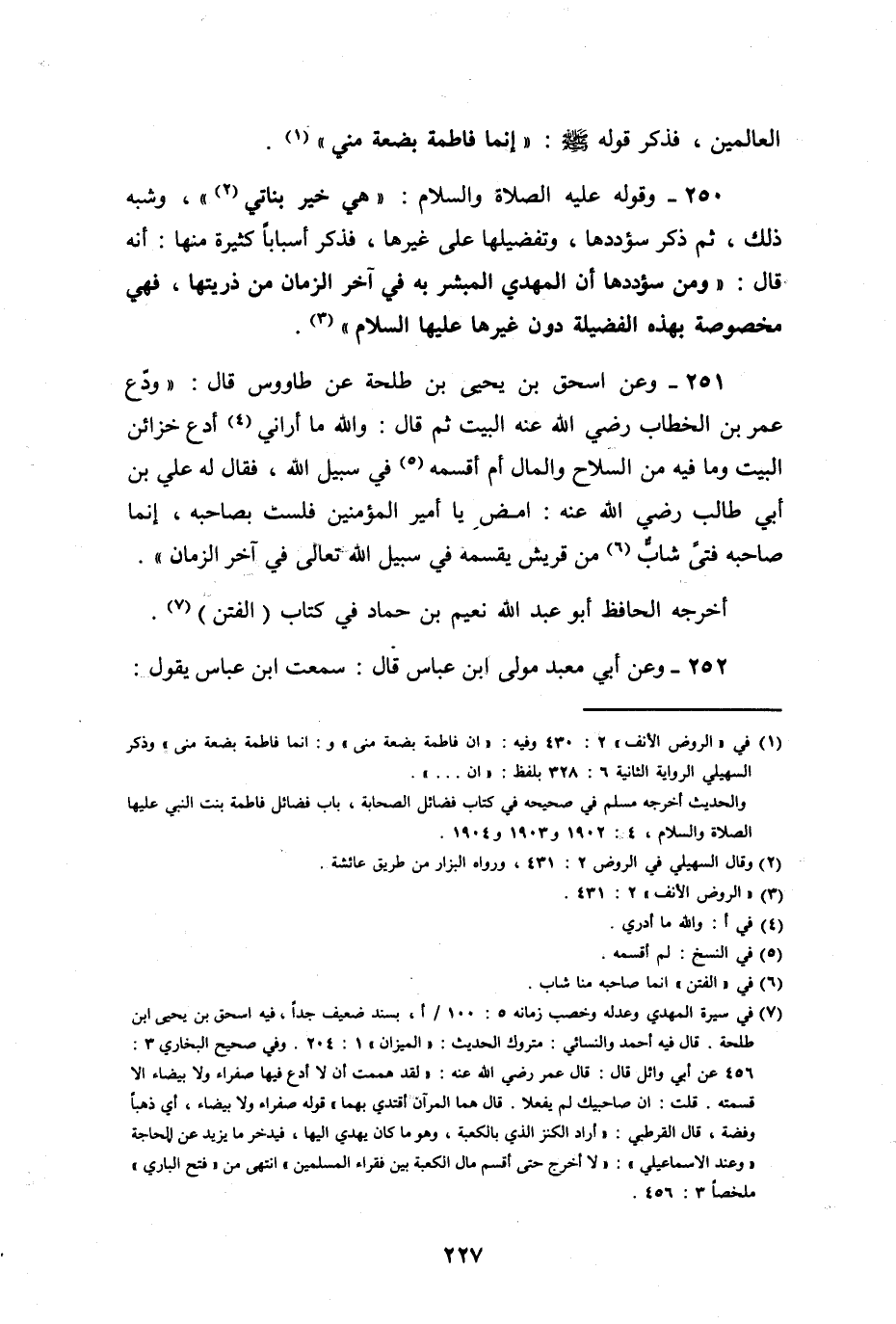 العالمين، فذكر قوله صلى الله عليه وسلم: " إنما فاطمة بضعة مني " وقوله عليه السلام: " هي خير بناتي "، وشبه ذلك، ثم ذكر سؤددها، وتفضيلها على غيرها، فذكر أسباباً كثيرة؛ منها نه قال: ومن سؤددها أن المهدي المبشر به في آخر الزمان من ذريتها، فهي مخصوصة بهذه الفضيلة دون غيرها، عليها السلام.