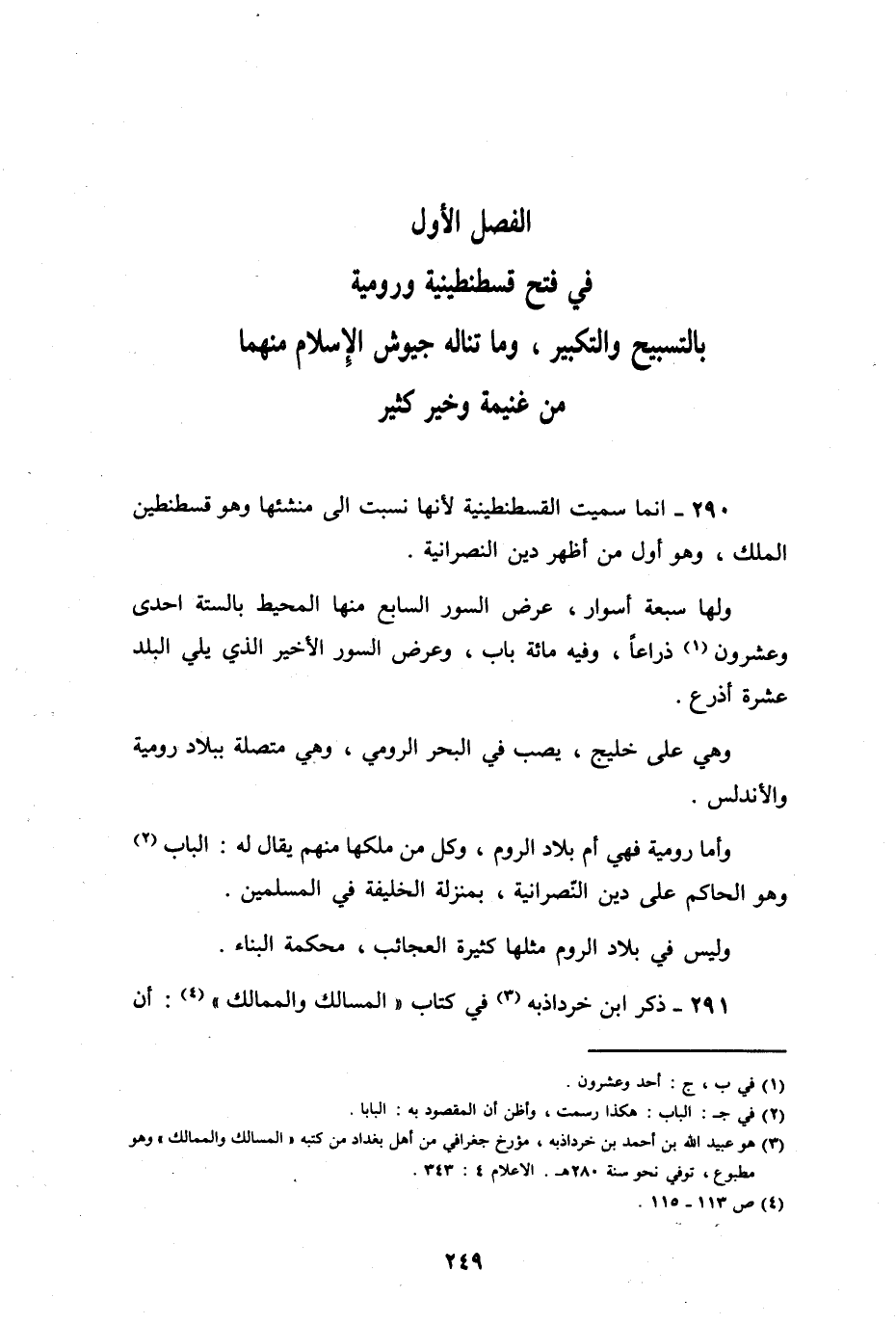 الفصل الأول في فتح قسطنطينية ورومية بالتسبيح والتكبير وما تناله جيوش الإسلام منهما من غنيمة، وخير كثير.