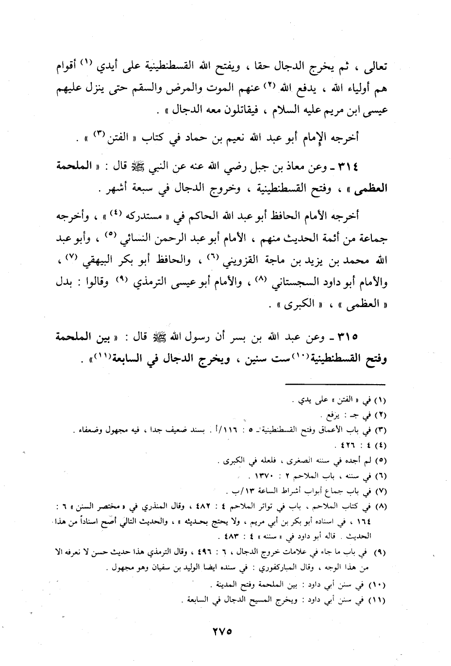 وعن عبد الله بن بسر أن رسول الله صلى الله عليه وسلم قال: " بين الملحمة وفتح القسطنطينية ست سنين، ويخرج الدجال في السابعة ".