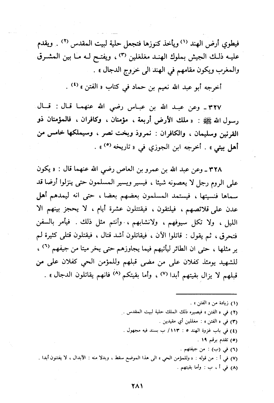 أخرجه أبو عبد الله نعيم بن حماد في كتاب الفتن. وفي رواية له عن كعب أيضاً، بعد قوله، يقدم عليه بملوك الهند مغلغلين: ويفتح له ما بين المشرق والمغرب.