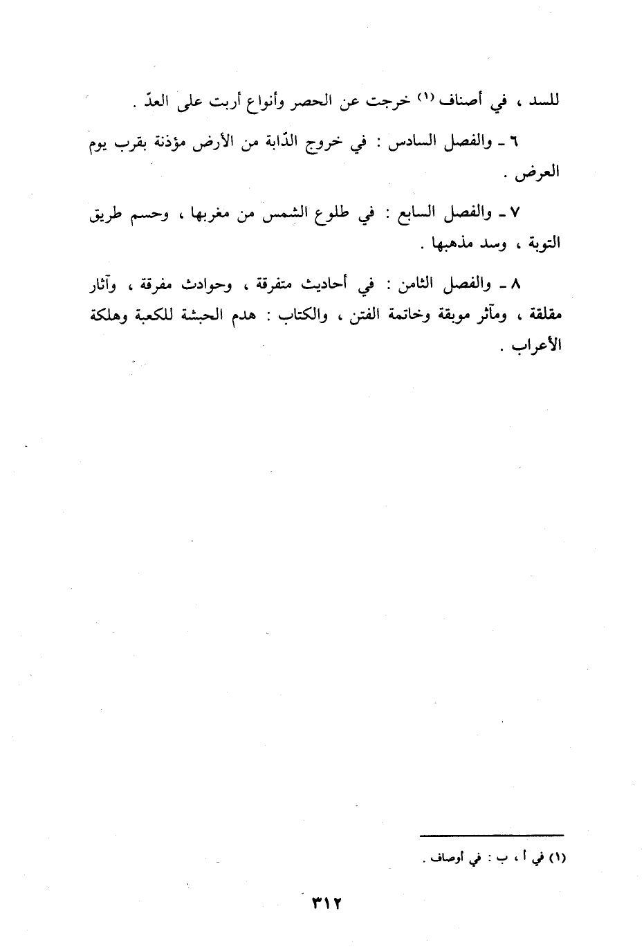 وخاتمة الفتن والكتاب؛ هدم الحبشة للكعبة وهلكة الأعراب.......