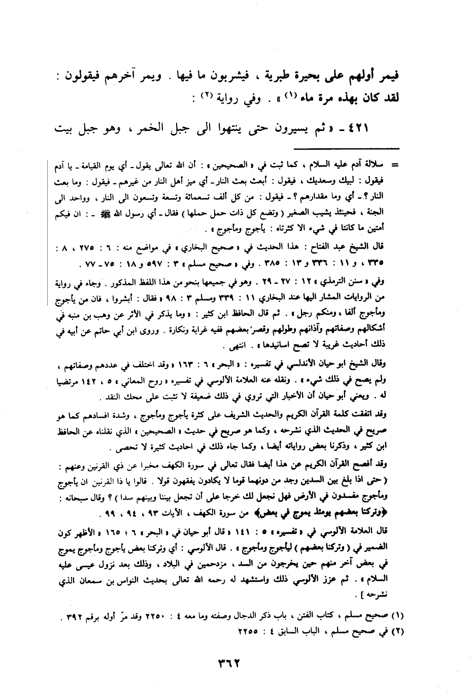 فيمر أوائلهم على بحيرة طبرية، فيشربون ما فيها، ويمر آخرهم فيقولون: لقد كان بهذه مرة ماء ".