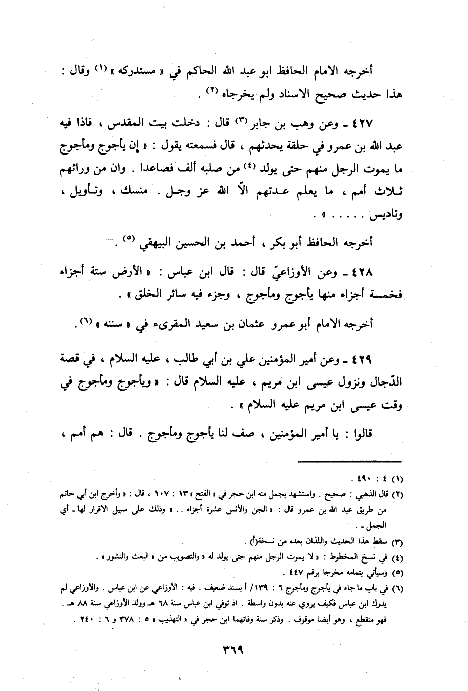 وعن أمير المؤمنين علي بن أبي طالب، عليه السلام، في قصة الدجال، ونزول عيسى ابن مريم عليه السلام قال: ويأجوج ومأجوج في وقت عيسى ابن مريم، عليه السلام.