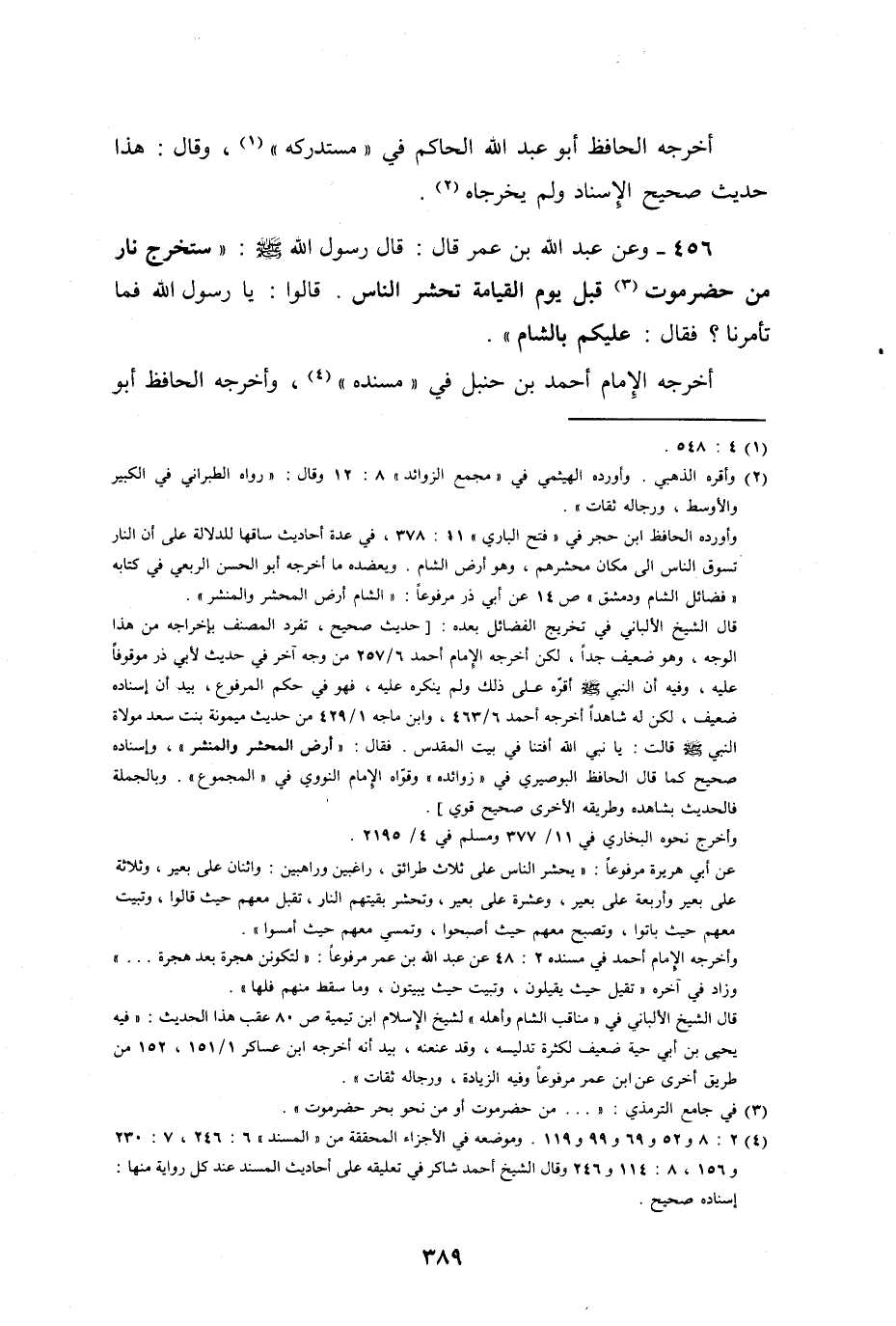 وعن عبد الله بن عمر رضي الله عنهما قال: قال رسول الله صلى الله عليه وسلم: " ستخرج نار من حضرموت قبل يوم القيامة، تحشر الناس ".