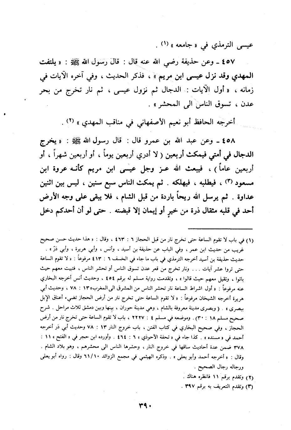 وعن حذيفة بن اليمان، رضي الله عنه قال: قال رسول الله صلى الله عليه وسلم: " يلتفت المهدي، وقد نزل عيسى ابن مريم ".