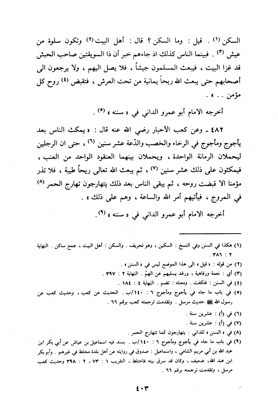 وتكون سلوة من عيش فبينما الناس كذلك، إذ جاءهم خبر أن ذا السويقتين صاحب الجيش قد غزا البيت، فيبعث المسلمون جيشاً فلا يصل إليهم، ولا يرجعون إلى أصحابهم، حتى يبعث الله ريحاً يمانية، من تحت العرش فتقبض روح كل مؤمن أخرجه الإمام أبو عمرو الداني في سننه.