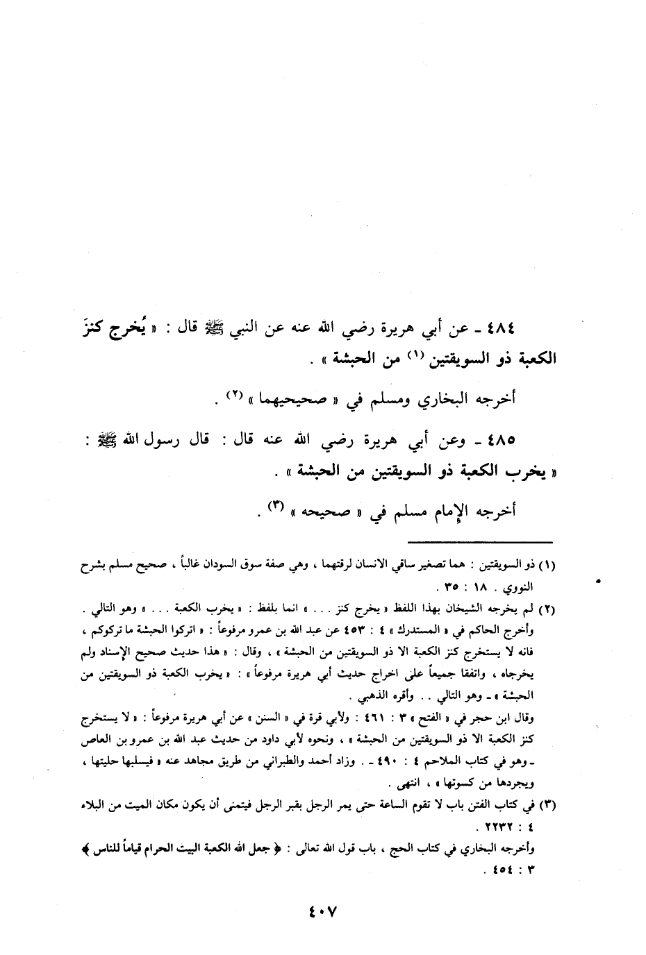 وعن أبي هريرة رضي الله عنه قال: قال رسول الله صلى الله عليه وسلم: " يخرب الكعبة ذو السويقتين من الحبشة ".