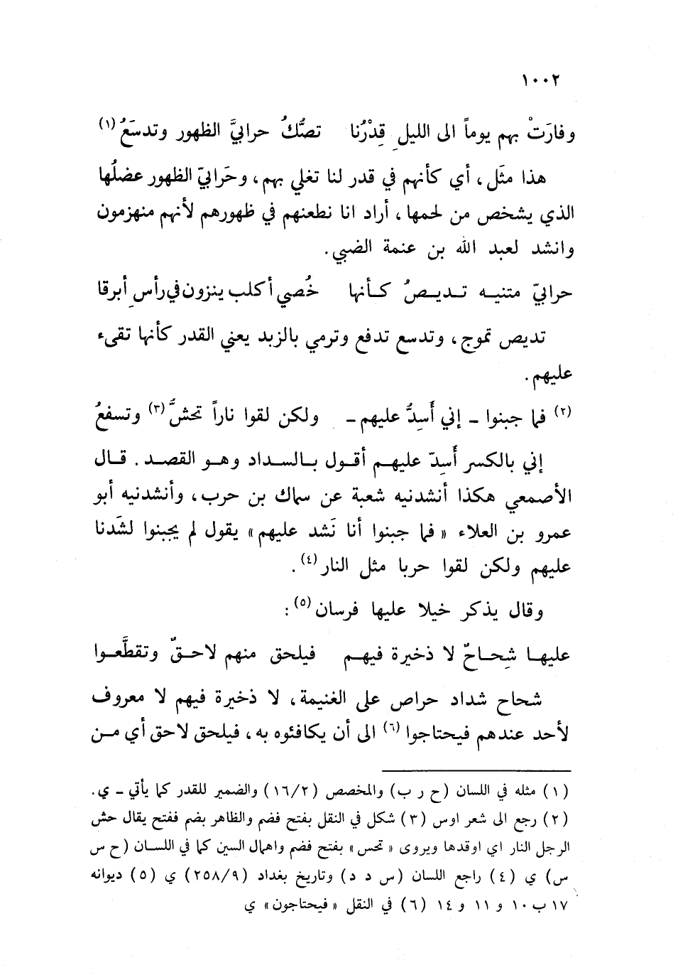 هذا مثل، أي كأنهم في قدر لنا تغلي بهم، وحَرابيّ الظهور عضلُها الذي يشخص من لحمها، أراد إنا نطعنهم في ظهورهم لأنهم منهزمون وأنشد لعبد الله بن عنمة الضبي.