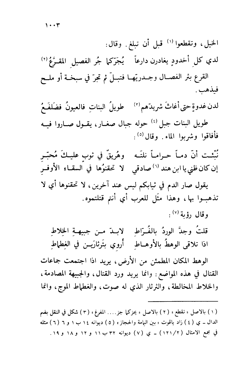 الوهط المكان المطمئن من الأرض، يريد إذا اجتمعت جماعات القتال في هذه المواضع: وإنما يريد ورد القتال، والجبيهة المصادمة، والخلاط المخالطة، والثرثار الذي له صوت، والغطماط الموج، وإنما