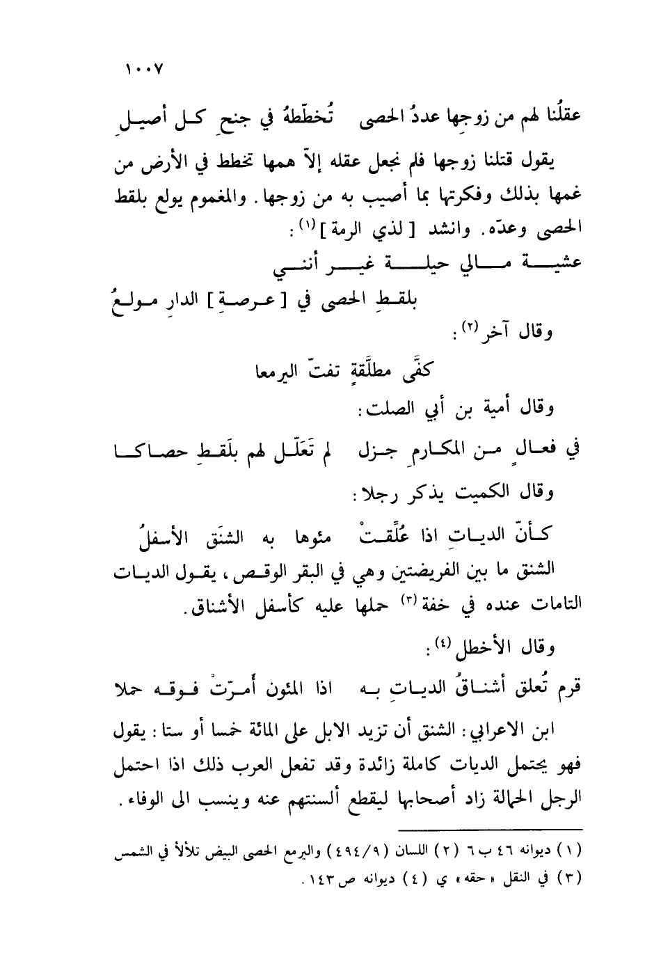 عقلُنا لهم من زوجِها عددُ الحصى ... تُخطّطهُ في جنحِ كل أصيلِ