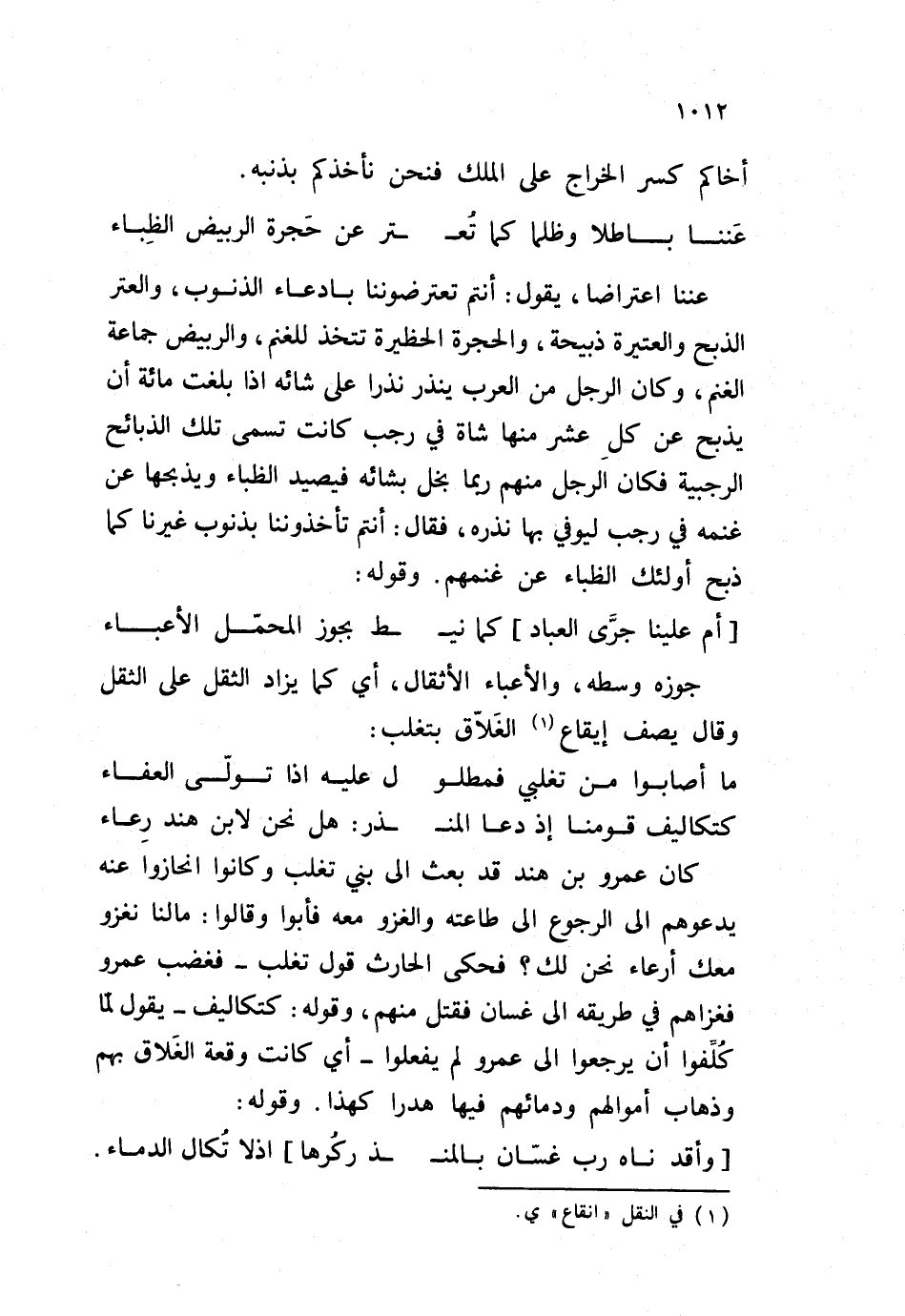عننا باطلا وظلما كما تُع ... تر عن حَجرة الربيض الظِباء
