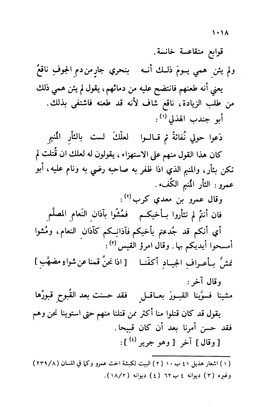 يعني أنه طعنهم فانتضح عليه من دمائهم، يقول لم يثن همي ذلك من طلب الزيادة، ناقع شاف لأنه قد طعنه فاشتفى بذلك. أبو جندب الهذلي: