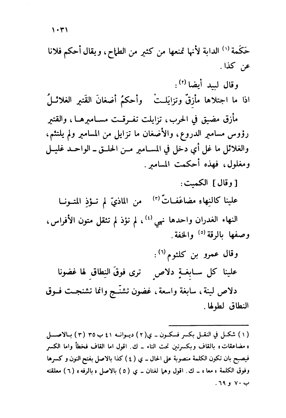 حكَمة الدابة لأنها تمنعها من كثير من الطماح، ويقال أحكم فلانا عن كذا. وقال لبيد أيضا: