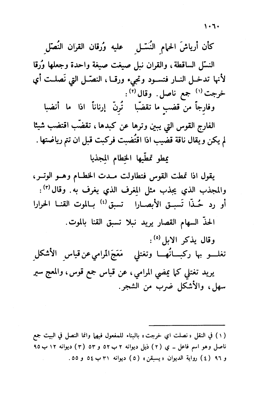 النسّل الساقطة، والقران نبل صيغت صيغة واحدة وجعلها وُرقا لأنها تدخل النار فتسود وتجيء ورقا، النصّل التي نصلت أي خرجت جمع ناصل. وقال: