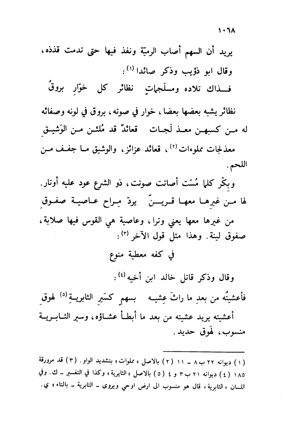 معذلجات مملوءات، قعائد عزائز، والوشيق ما جفف من اللحم. وبِكّر كلما مُسّت أصاتت صوتت، ذو الشرع عود عليه أوتار.