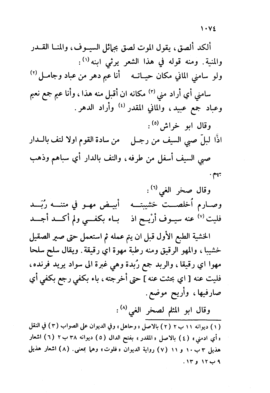 الطبع الأول قبل أن يتم عمله ثم استعمل حتى صير الصقيل خشيبا، والمهو الرقيق ومنه رطبة مهوة أي رقيقة. ويقال سلح سلحا مهوا أي رقيقا، والربد جمع ربدة وهي غبرة إلى سواد يريد فرنده، فليت عنه أي بحثت عنه حتى أخرجته، باء بكفي رجع بكفي أي صار فيها، وأريح موضع. وقال أبو المثلم لصخر الغي: