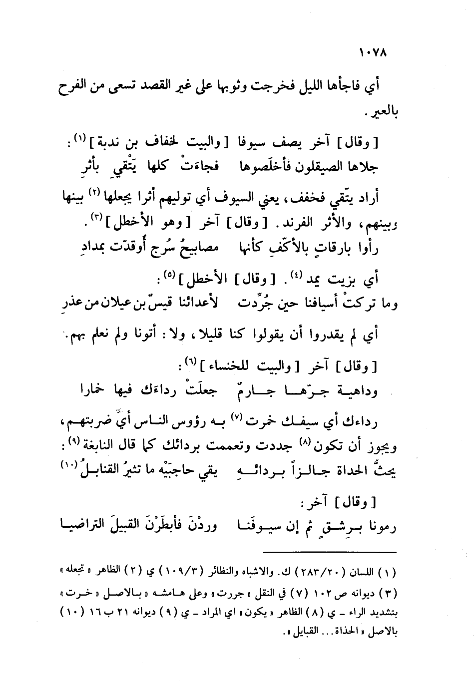 وقال آخر يصف سيوفا والبيت لخفاف بن ندبة: