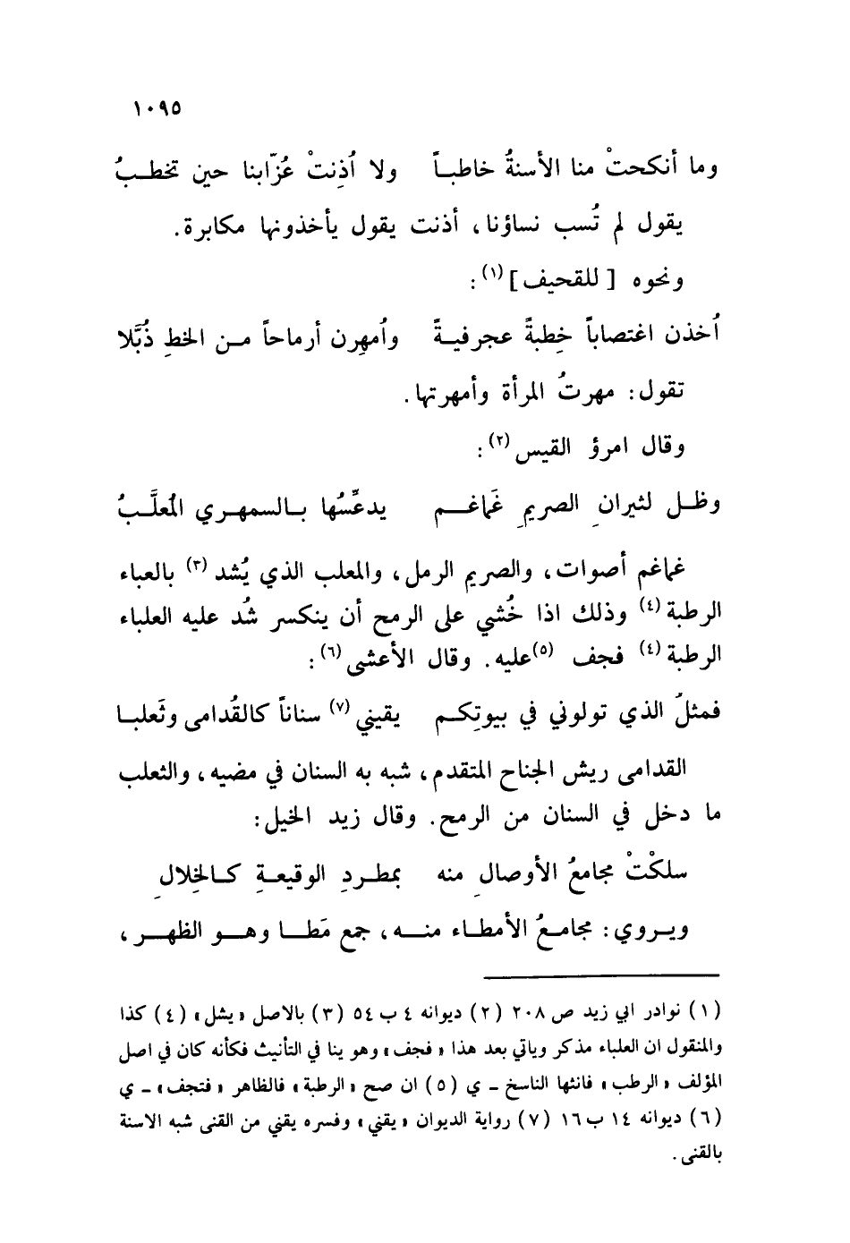 غماغم أصوات، والصريم الرمل، والمعلب الذي يشد بالعباء الرطبة وذلك إذا خُشي على الرمح أن ينكسر شد عليه العلباء الرطبة فجف عليه. وقال الأعشى: فمثل الذي تولوني في بيوتِكم يقيني سناناً كالقدامى وثَعلبا القدامى ريش الجناح المتقدم، شبه به السنان في مضيه، والثعلب ما دخل في السنان من الرمح. وقال زيد الخيل: