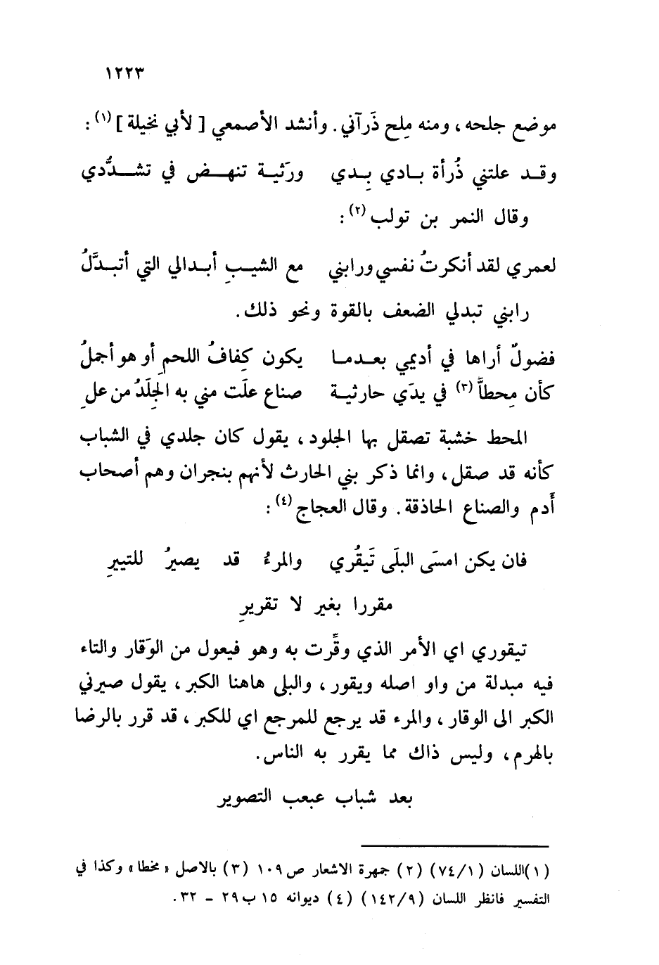 تيقوري أي الأمر الذي وقرت به وهو فيعول من الوقار والتاء فيه مبدلة من واو أصله ويقور، والبلى هاهنا الكبر، يقول صيرني الكبر إلى الوقار، والمرء قد يرجع للمرجع أي للكبر، قد قرر بالرضا بالهرم، وليس ذاك مما يقرر به الناس.