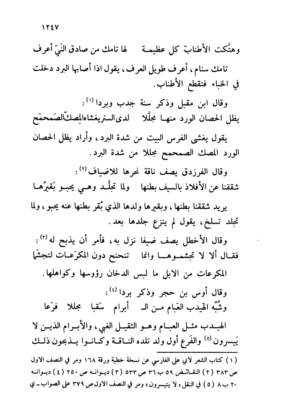 وقال الفرزدق يصف ناقة نحرها للأضياف: