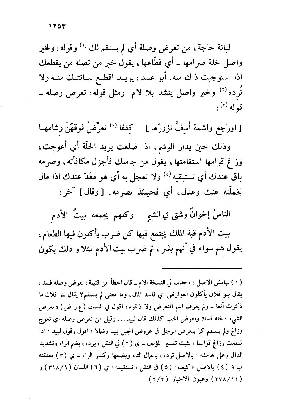 لبانة حاجة، من تعرض وصلة أي لم يستقم لك وقوله: ولخير واصل خلة صرامها - أي قطاعها، يقول خير من تصله من يقطعك إذا استوجبت ذاك منه. أبو عبيد: يريد اقطع لبانتك منه ولا ترده وخير واصل ينشد بلا لام. ومثل قوله: تعرض وصله - قوله: