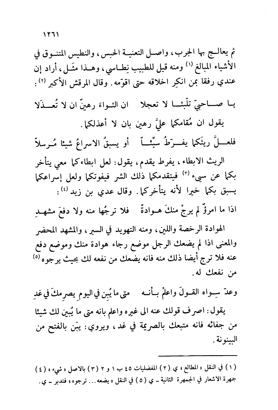 فلعل ريثكما يفرط سيئاً ... أو يسبق الإسراع شيئاً مرسلاً