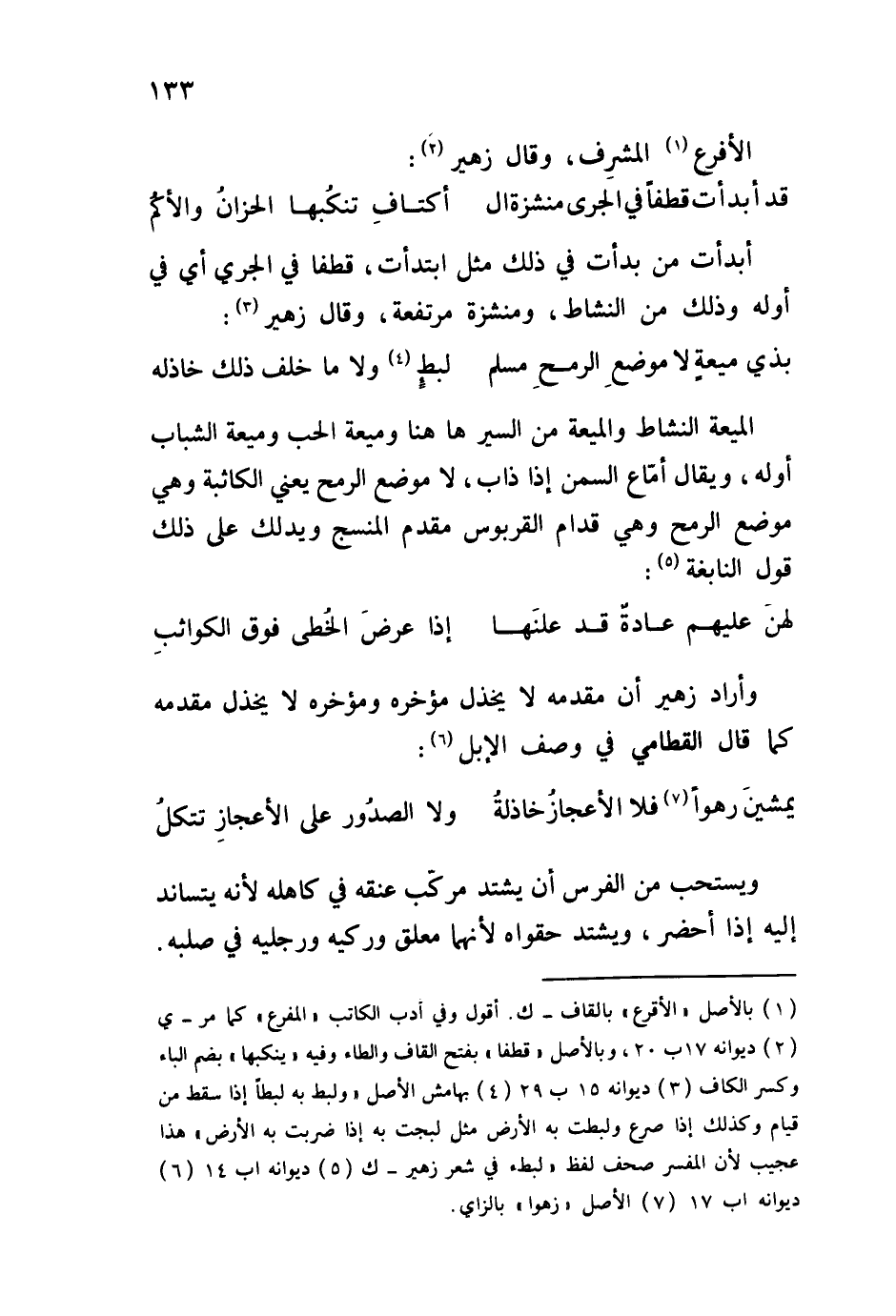 أبدأت من بدأت في ذلك مثل ابتدأت، قطفاً في الجري أي في أوله وذلك من النشاط، ومنشزة مرتفعة، وقال زهير:
