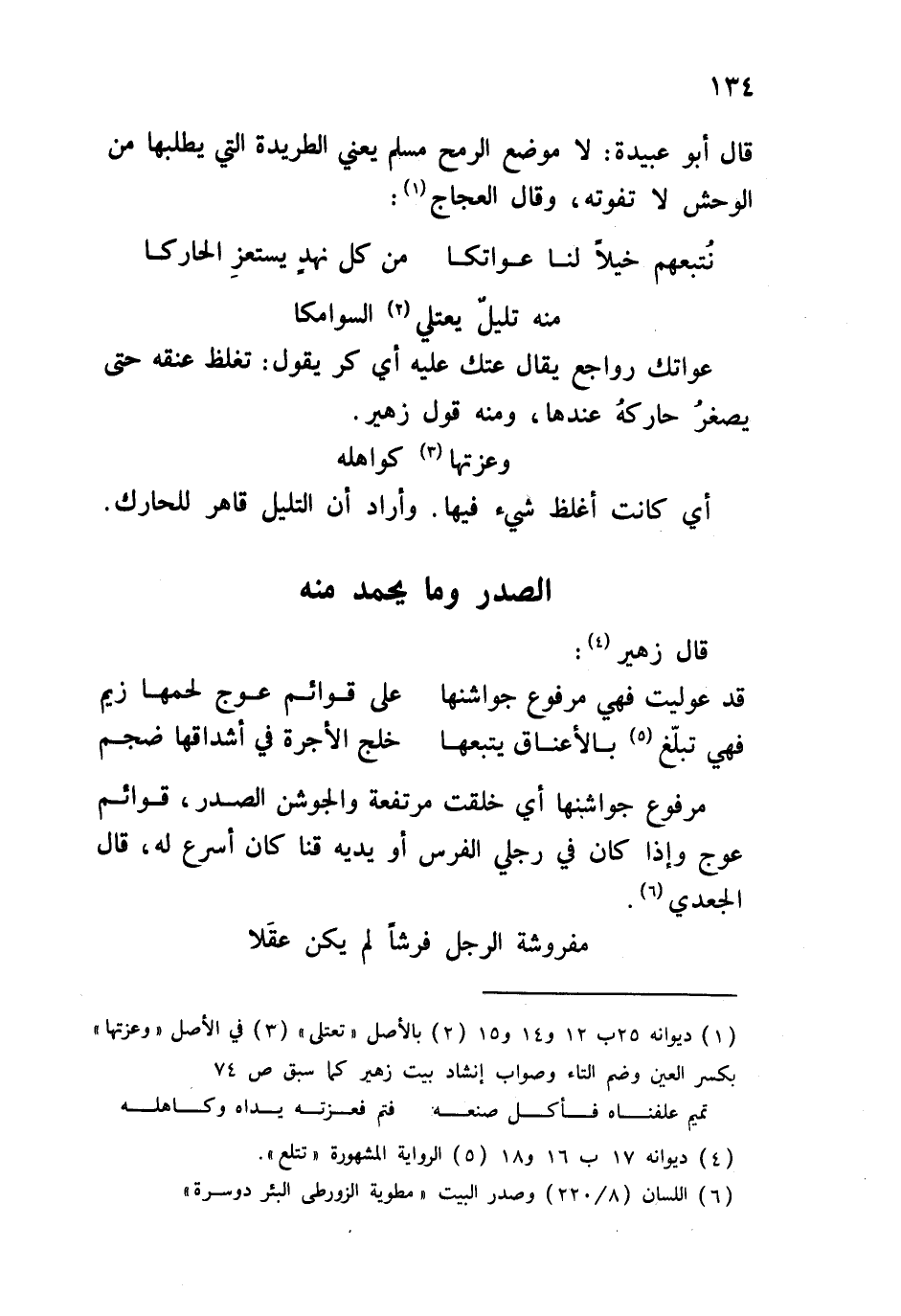 عواتك رواجع يقال عتك عليه أي كر. يقول: تغلظ عنقه حتى يصغرُ حاركُه عندها، ومنه قول زهير: