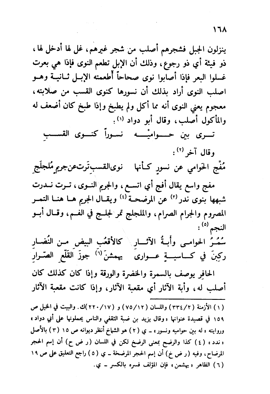 ينزلون الجبل فشجرهم أصلب من شجر غيرهم، غل لها أدخل لها، ذو فيئة أي ذو رجوع، وذلك أن الإبل تطعم النوى فإذا هي بعرت غسلوا البعر فإذا أصابوا نوى صحاحاً أطعمته الإبل ثانية وهو أصلب النوى أراد بذلك أن نسورها كنوى القسب من صلابته، معجوم يعني النوى أنه مما أكل ولم يطبخ وإذا طبخ كان أضعف له والمأكول أصلب، وقال أبو داود: