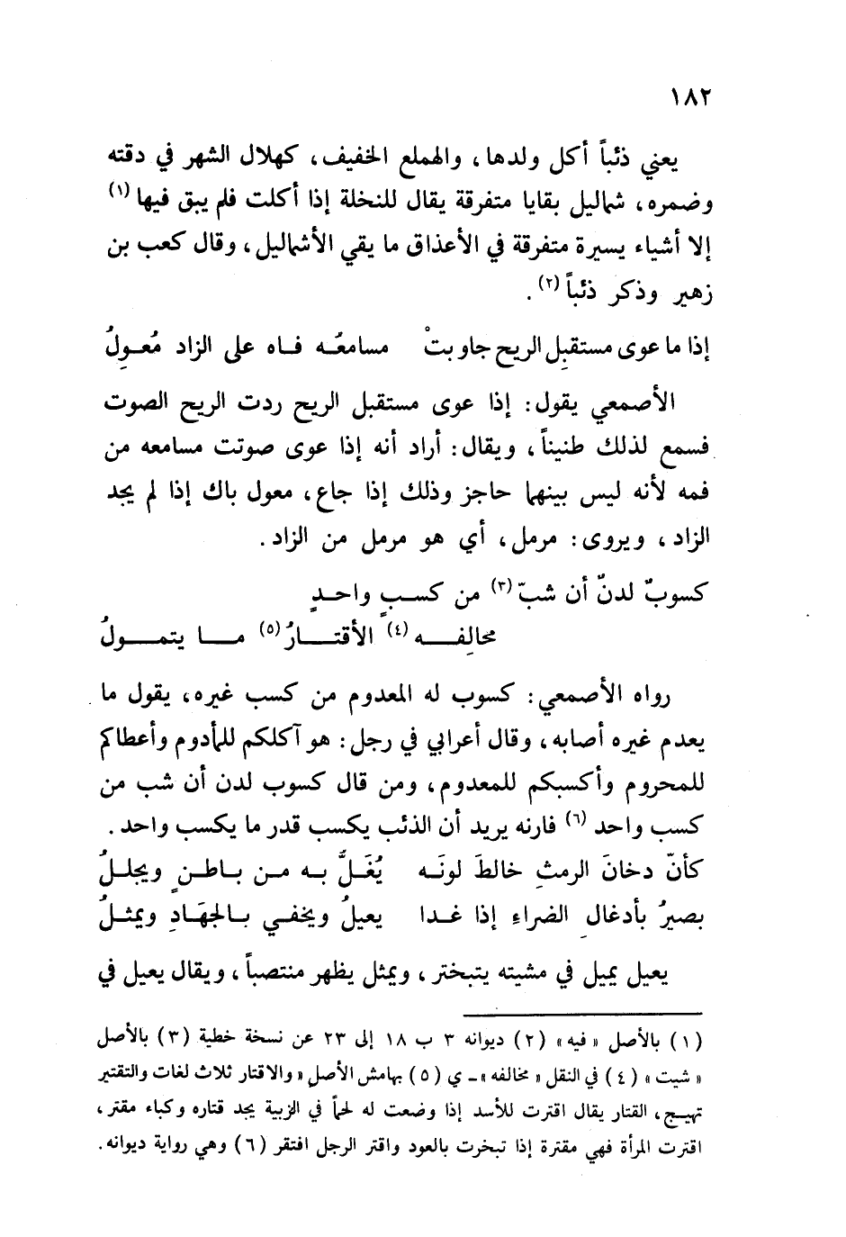 رواه الأصمعي: كسوب له المعدوم من كسب غيره، يقول ما يعدم غيره أصابه، وقال أعرابي في رجل: هو آكلكم للمأدوم وأعطاكم للمحروم وأكسبكم للمعدوم: ومن قال كسوب لدن أن شب من كسب واحد فإنه يريد أن الذئب يكسب قد ما يكسب واحد.