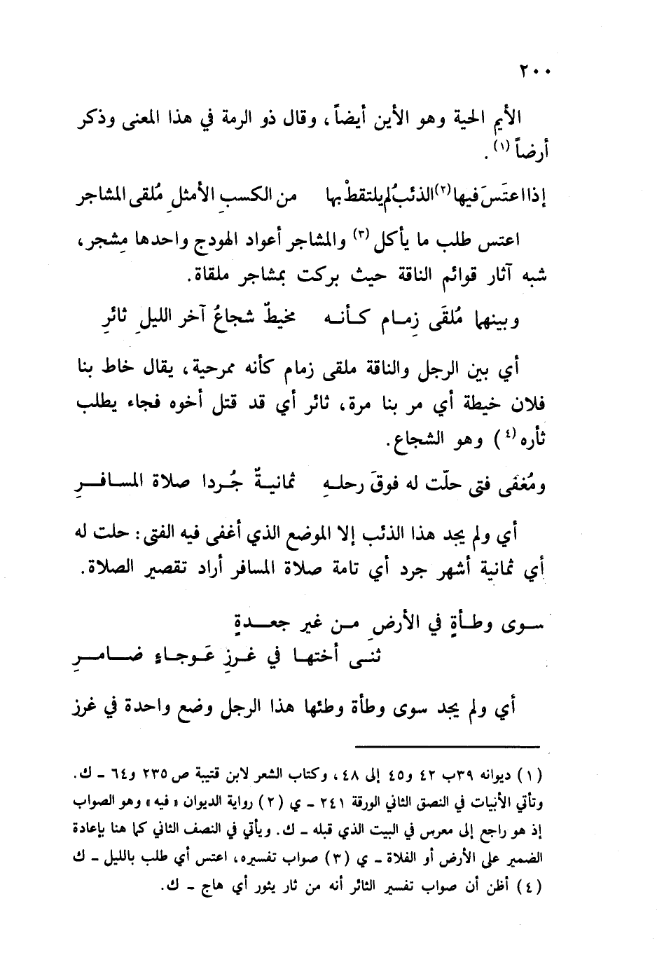 اعتس طلب ما يأكل والمشاجر أعواد الهودج واحدها مِشجر، شبه آثار قوائم الناقة حيث بركت بمشاجر ملقاة.