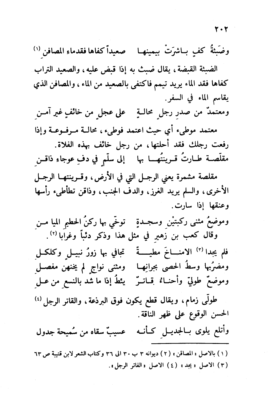 وضَبثةُ كفٍ باشرتْ بيمينها ... صعيداً كفاها فقد ماءِ المصافنِ