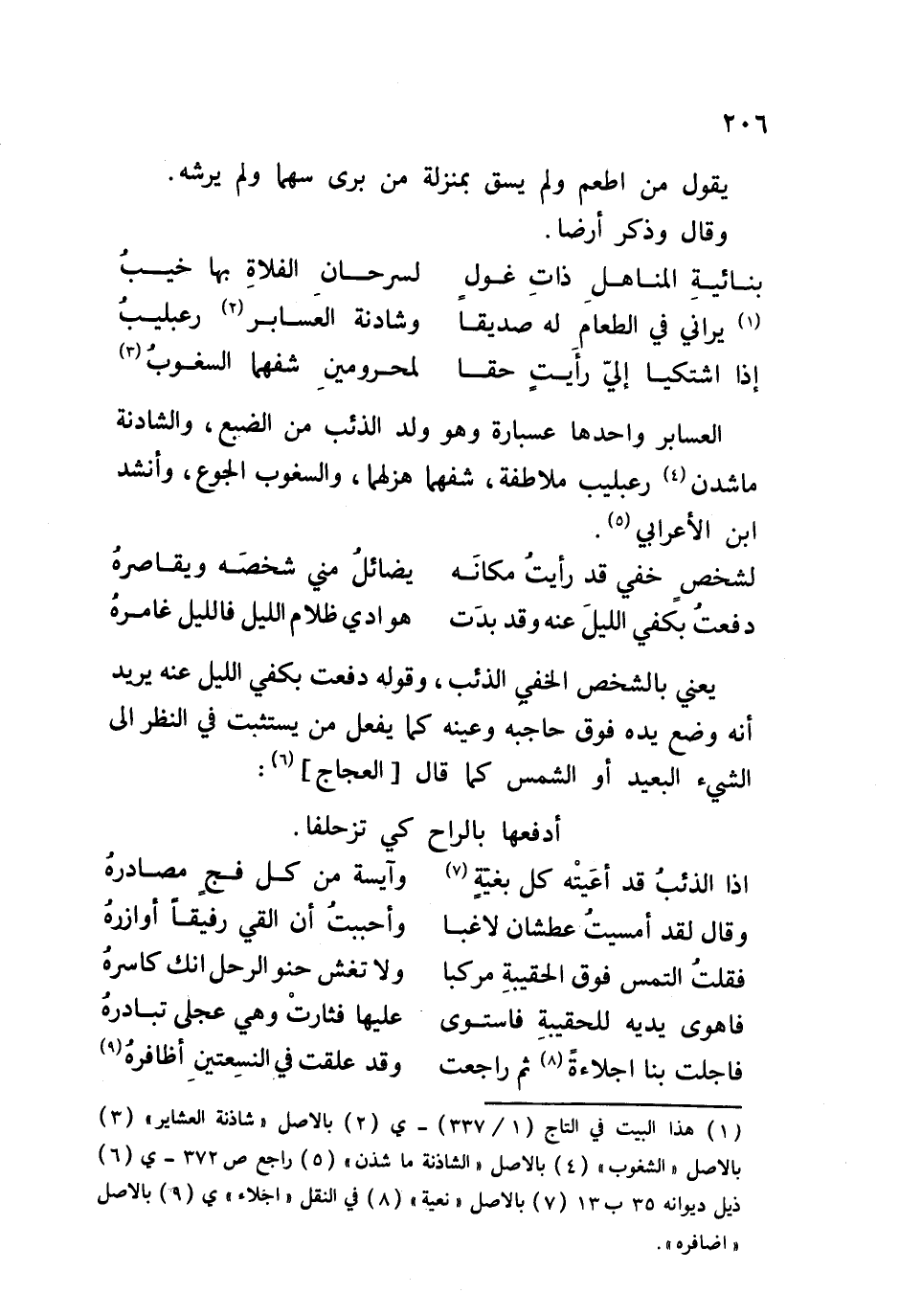 يعني بالشخص الخفي الذئب، وقوله دفعت بكفي الليل عنه يريد أنه وضع يده فوق حاجبه وعينه كما يفعل من يستثبت في النظر إلى الشيء البعيد أو الشمس كما قال - العجاج: