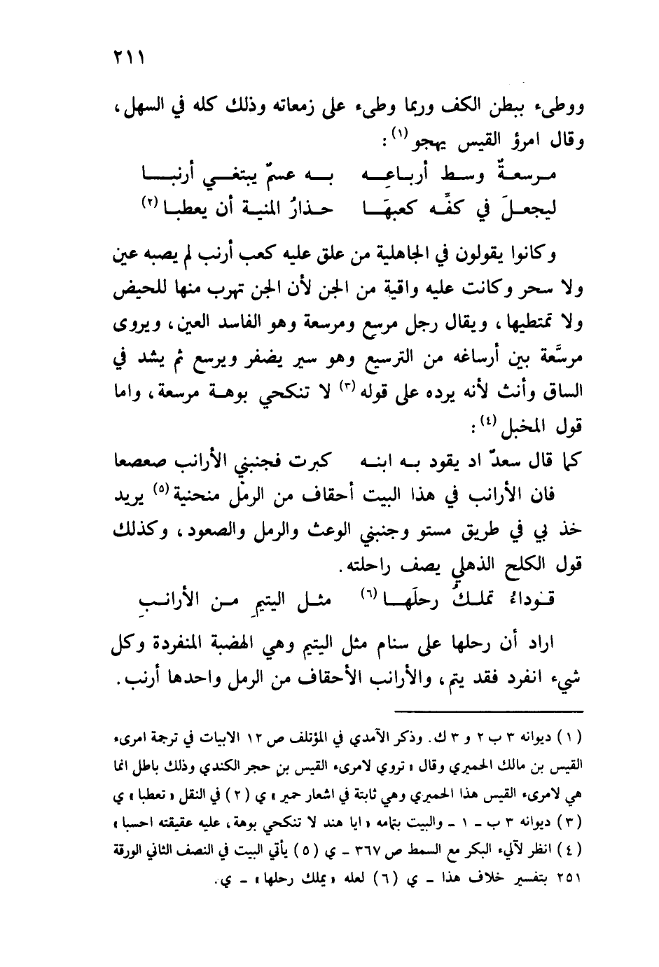 فإن الأرانب في هذا البيت أحقاف من الرمل منحنية يريد خذ بي في طريق مستو وجنبني الوعث والرمل والصعود، وكذلك قول الكلح الذهلي يصف راحلته: