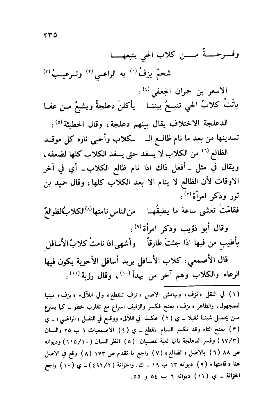 باتتْ كلابُ الحي تنبحُ بيننا ... يأكلنَ دعلجةً ويشبعُ من عفا