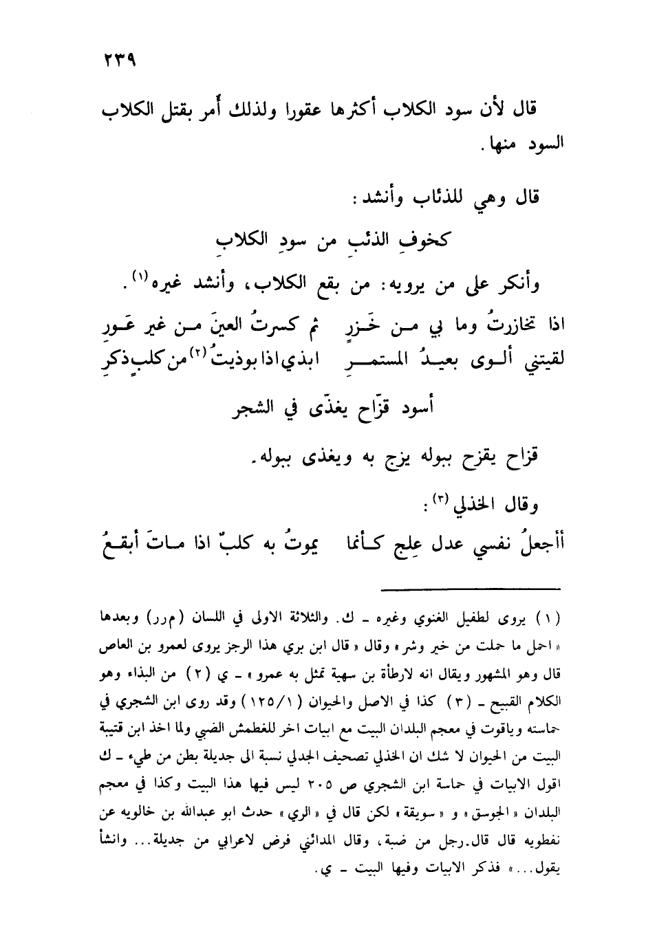 قال وهي للذئاب وأنشد: " كخوفِ الذئبِ من سودِ الكلابِ " وأنكر على من يرويه: من بقع الكلاب، وأنشد غيره: