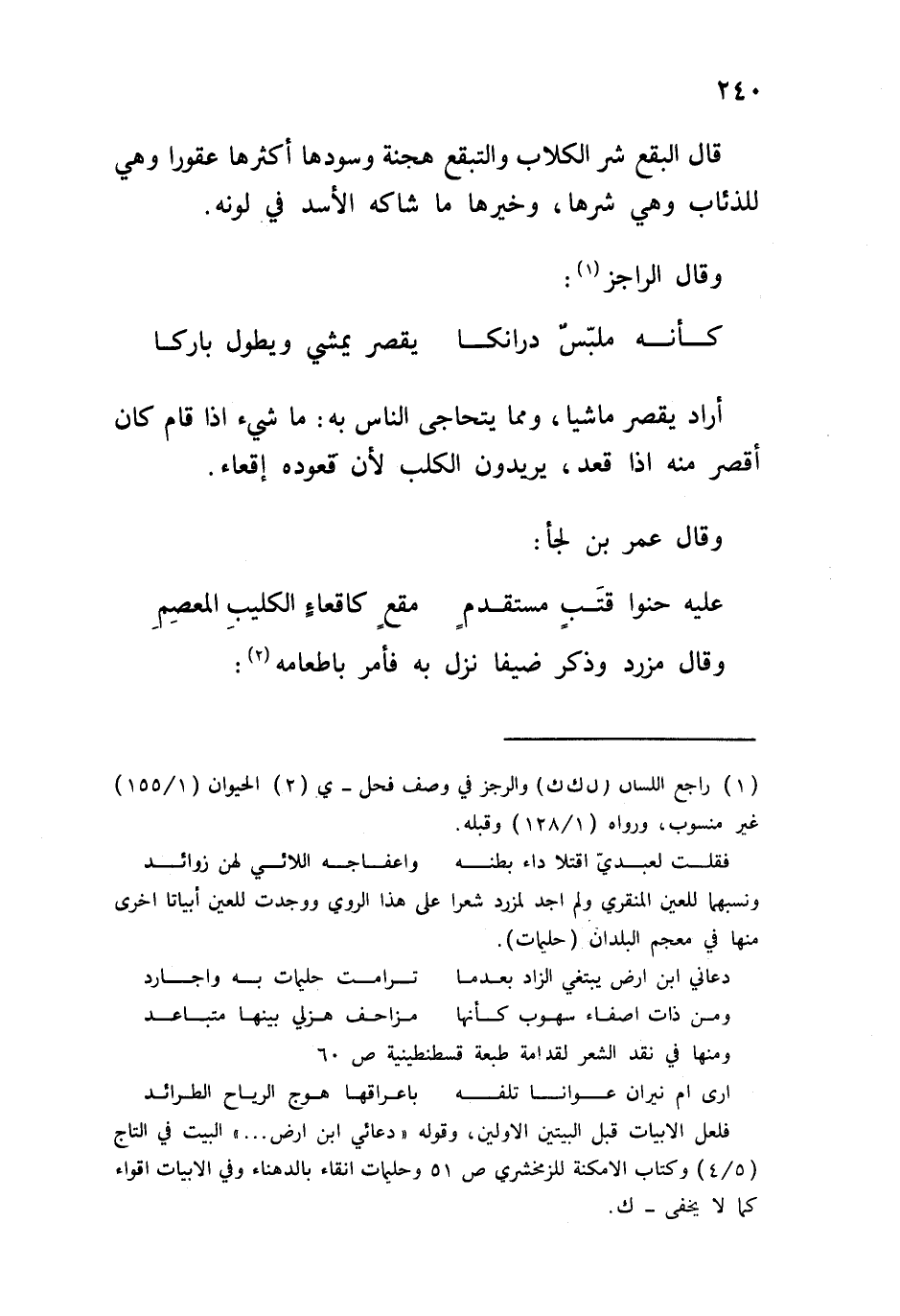 قال البقع شر الكلاب والتبقع هجنة وسوادها أكثرها عقوراً وهي للذئاب وهي شرها، وخيرها ما شاكه الأسد في لونه.