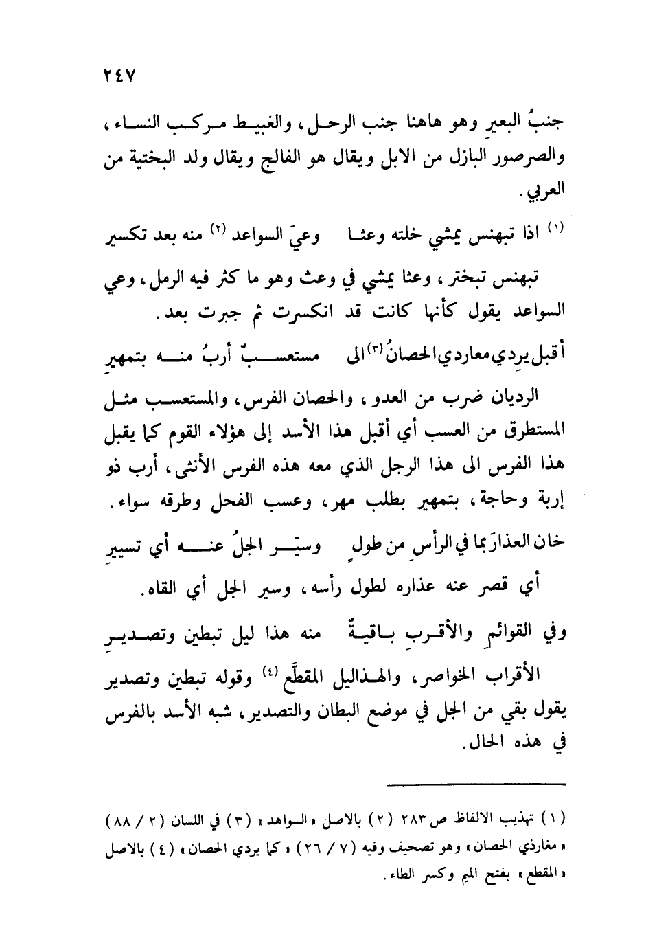 تبهنس تبختر، وعثاً يمشي في وعث وهو ما كثر فيه الرمل، وعي السواعد يقول كأنها كانت قد انكسرت ثم جبرت بعد.