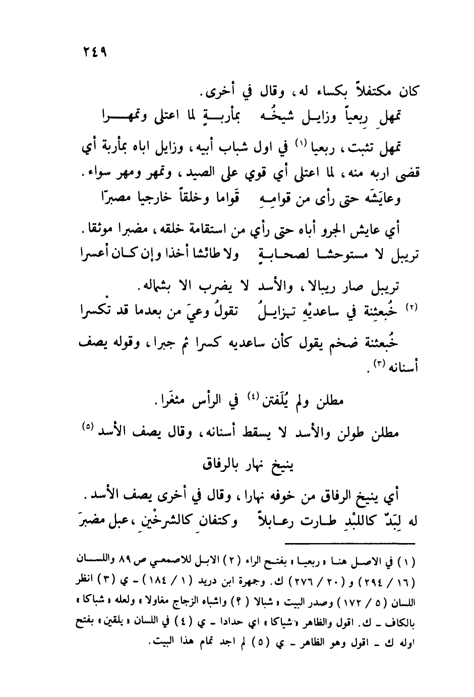 أي ينيخ الرفاق من خوفه نهاراً، وقال في أخرى يصف الأسد: