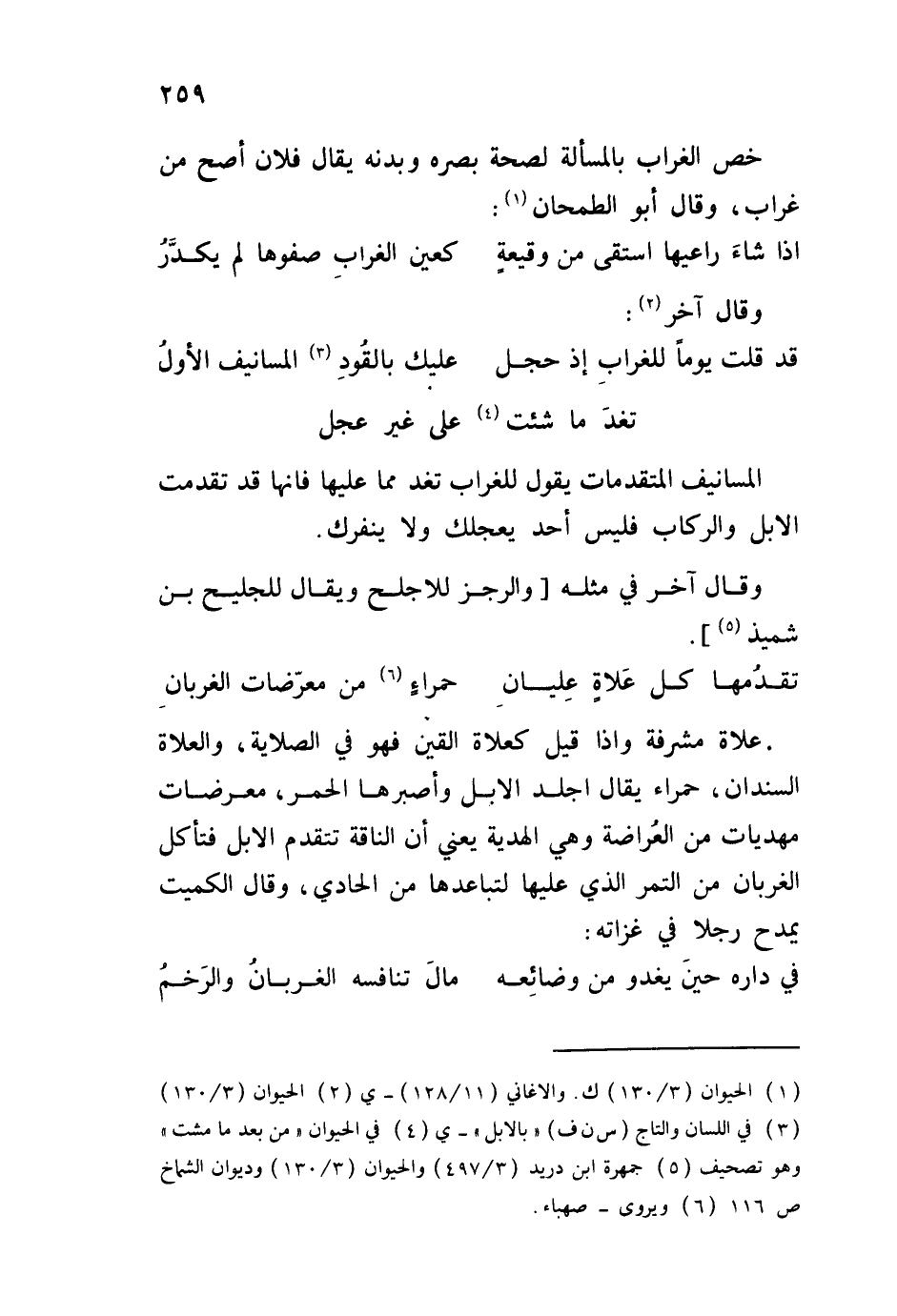 علاة مشرفة وإذا قيل كعلاة القين فهو الصلاية، والعلاة السندان، حمراء يقال أجلد الإبل وأصبرها الحمر، معرضات مهديات من العُراضة وهي الهدية يعني أن الناقة تتقدم الإبل فتأكل الغربان من التمر الذي عليها لتباعدها من الحادي، وقال الكميت يمدح رجلاً في غزاته: