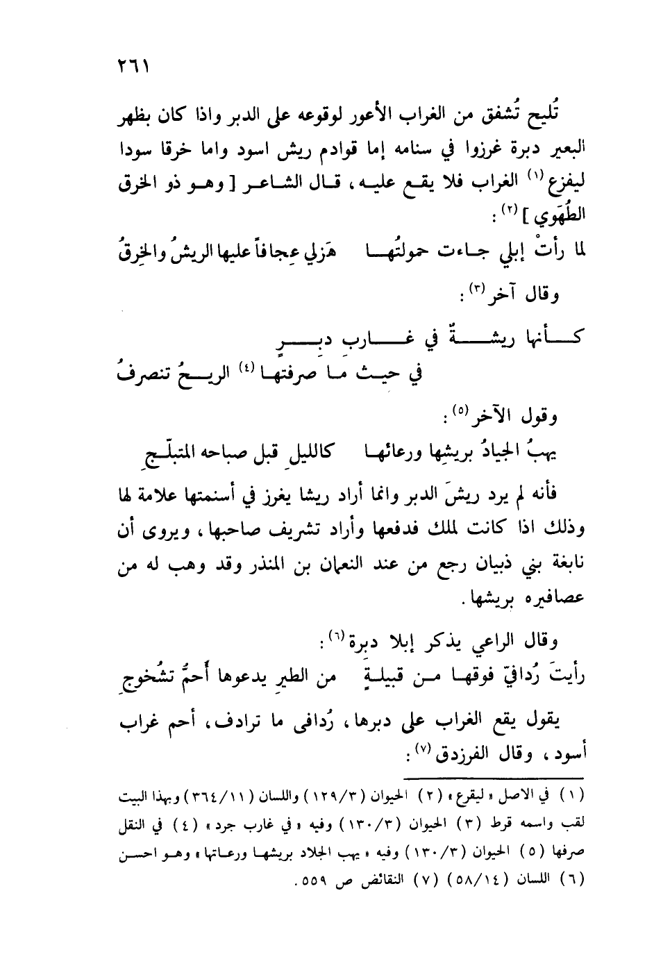 فأنه لم يرد ريش الدبر وإنما أراد ريشاً يغرز في أسنمتها علامة لها وذلك إذا كانت الملك فدفعها وأراد تشريف صاحبها، ويروى أن نابغة بني ذبيان رجع من عند النعمان بن المنذر وقد وهب له من عصافيره بريشها.
