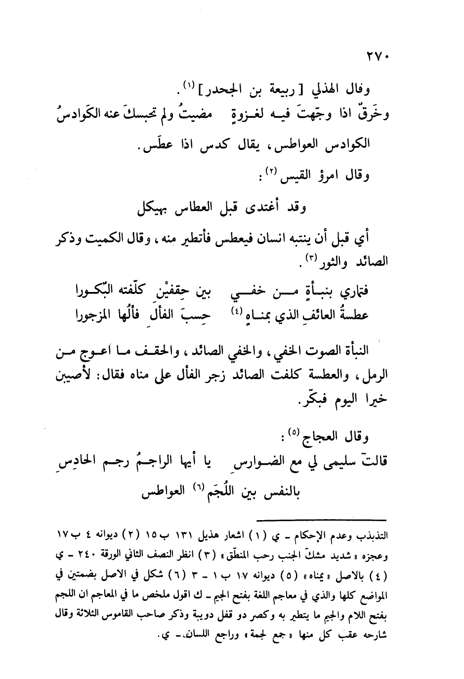النبأة الصوت الخفي، والخفي الصائد، والحقف ما اعوج من الرمل، والعطسة كلفت الصائد زجر الفأل على مناه فقال: لأصيبن خيراً اليوم فبكّر.