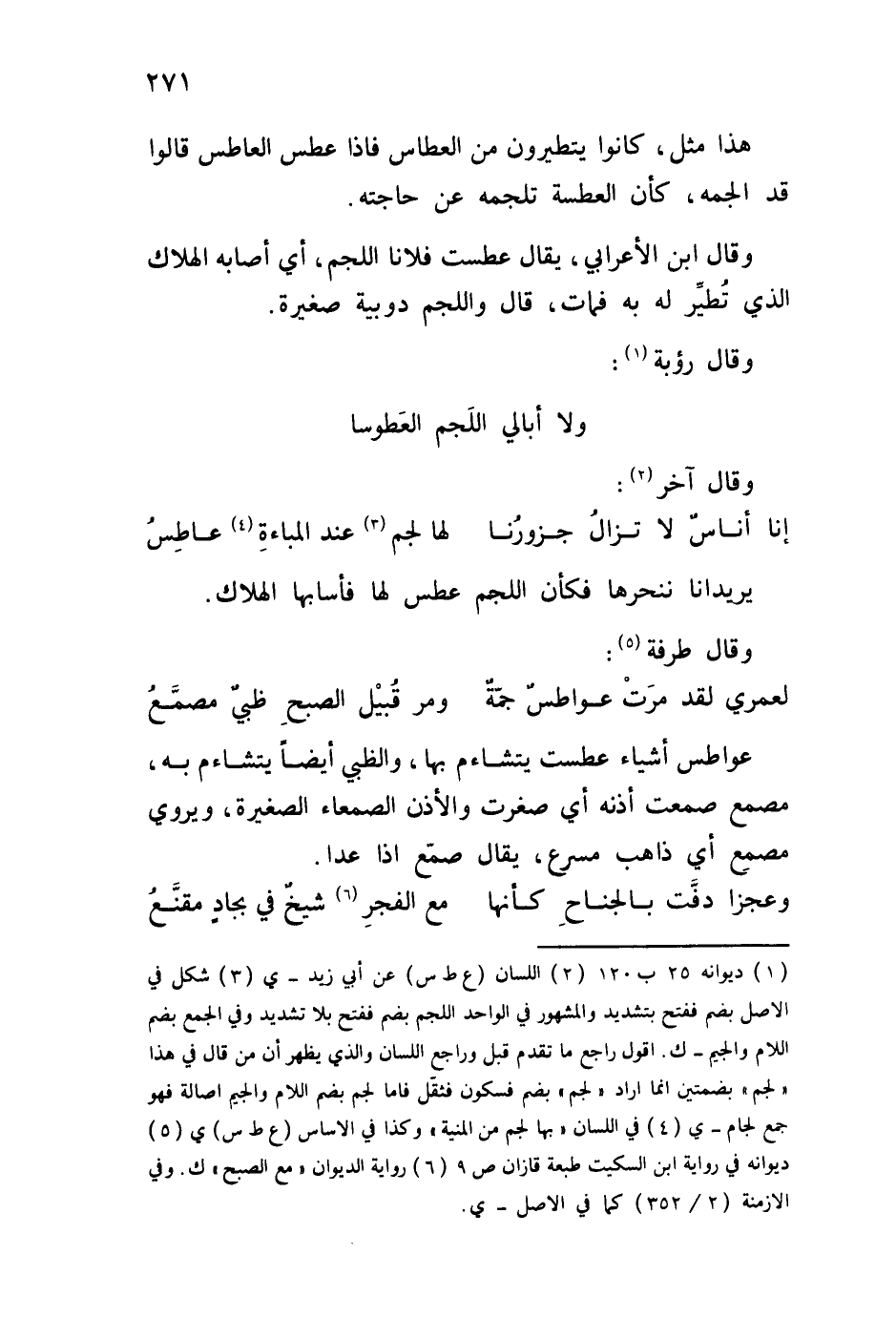 لعمري لقد مرَتْ عواطسٌ جمّةٌ ... ومر قُبيل الصبحِ ظبيٌ مصمَّعُ