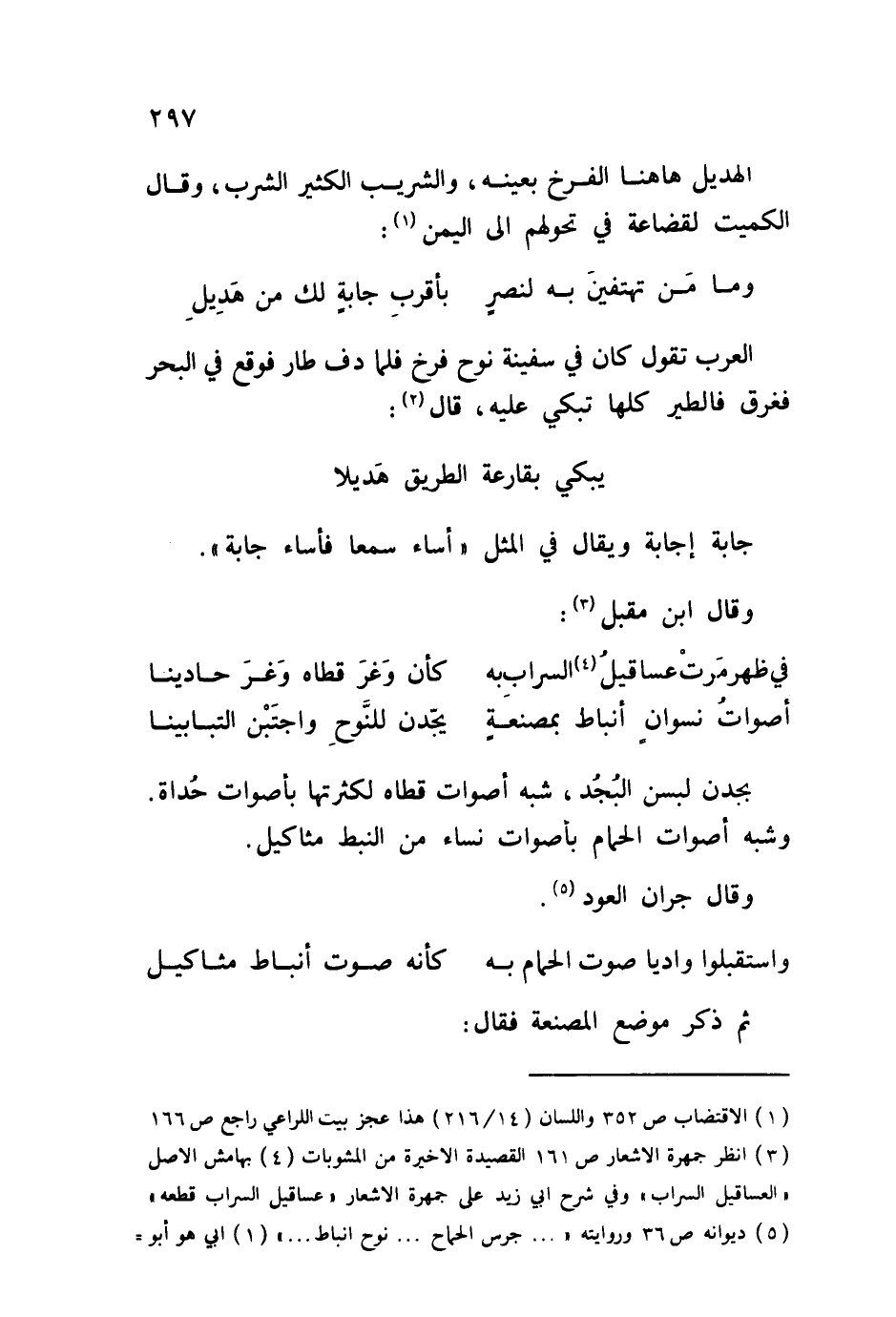 يجدن لبسن البُجُد، شبه أصوات قطاه لكثرتها بأصوات حُداة. وشبه أصوات الحمام بأصوات نساء من النبط مثاكيل.