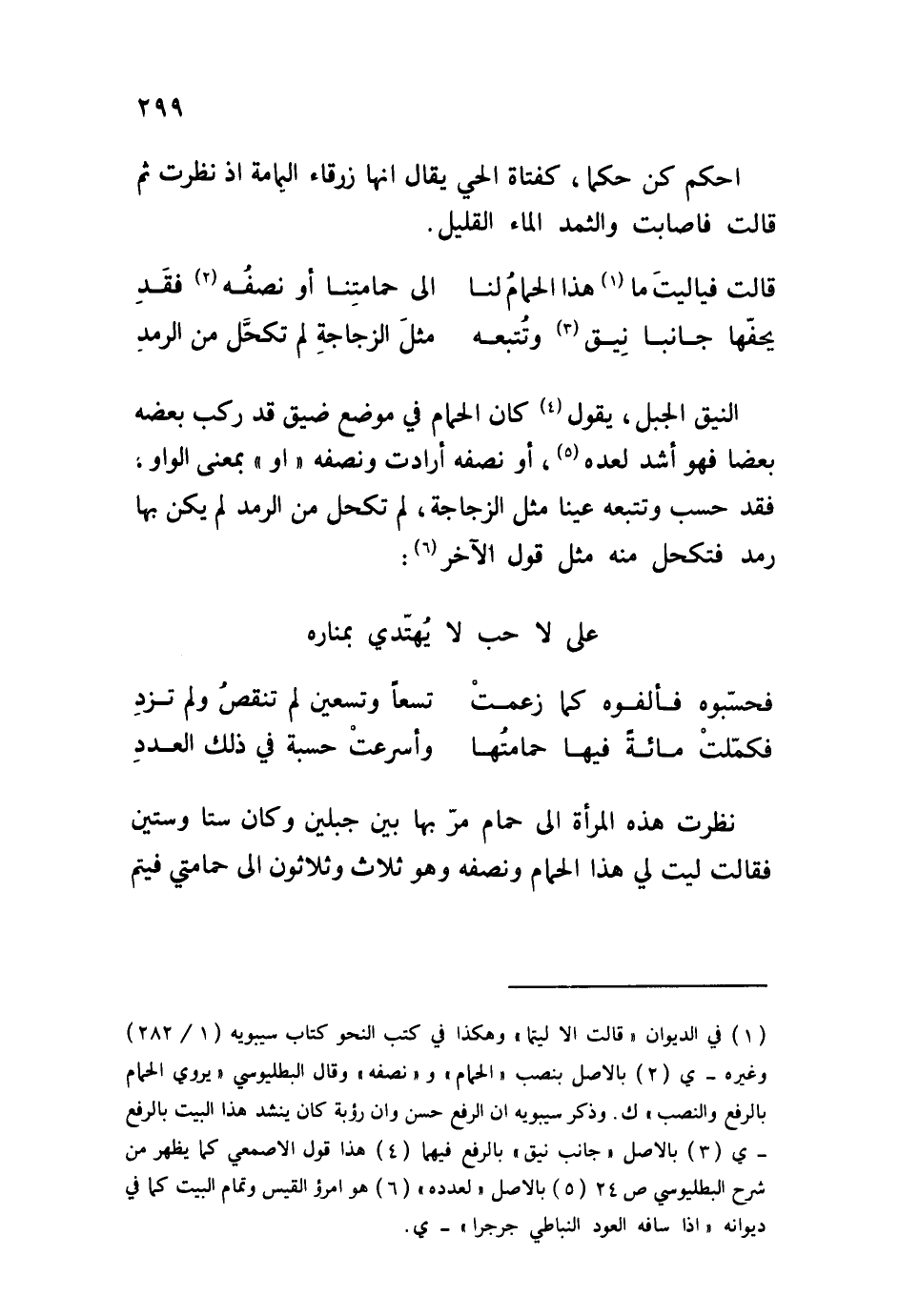 النيق الجبل، يقول كان الحمام في موضع ضيق قد ركب بعضه بعضاً فهو أشد لعده، أو نصفه أرادت ونصفه " أو " بمعنى الواو. فقد حسب وتتبعه عيناً مثل الزجاجة، لم تكحل من الرمد لم يكن بها رمد فتكحل منه مثل قول الآخر: